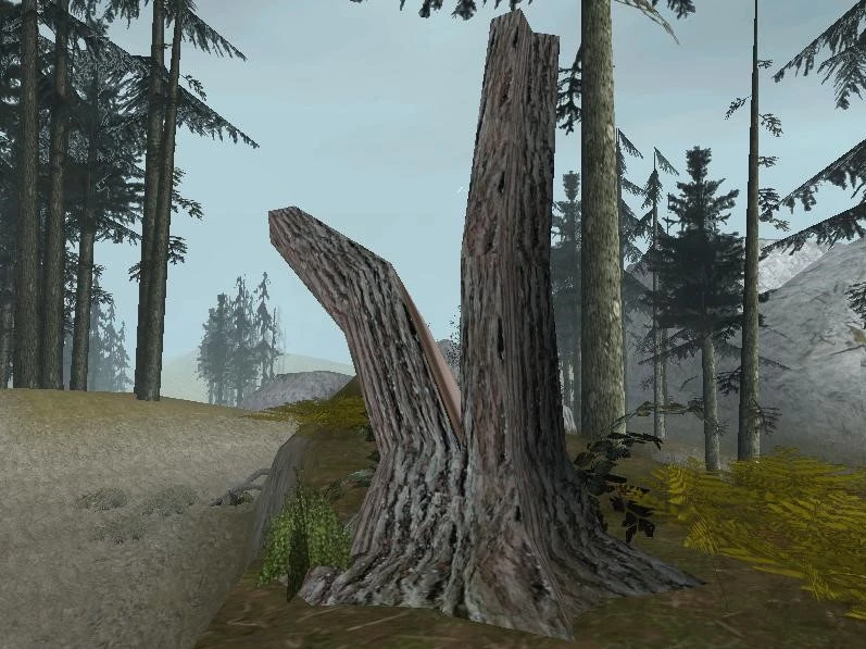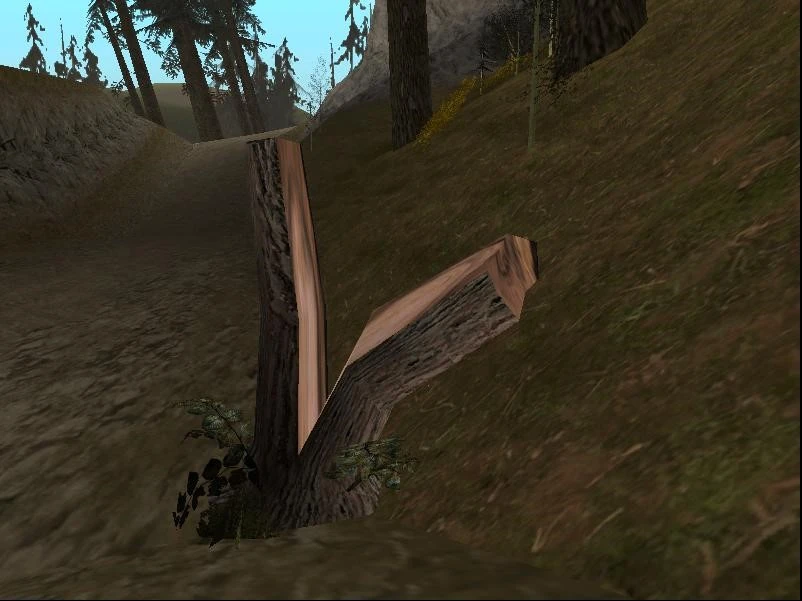 There were some trees cut down and warped in a violent way.