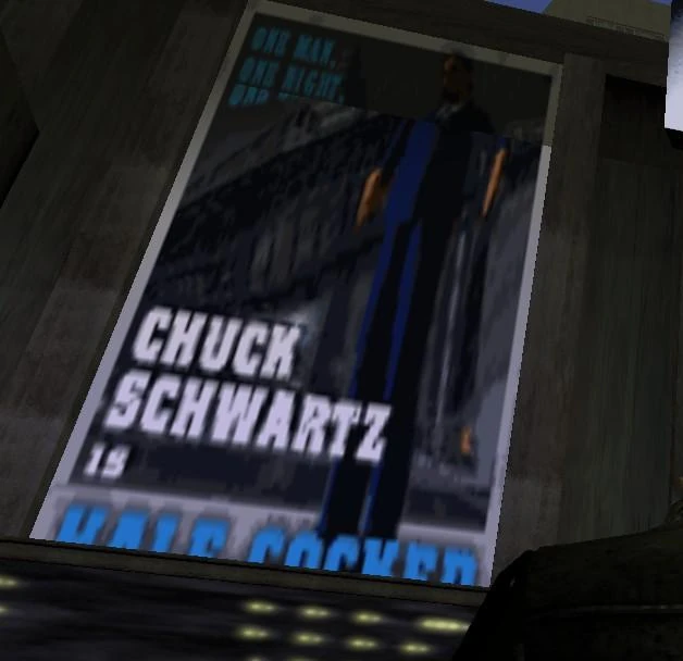 Chuck Schwartz is an Easter egg in Grand Theft Auto III, Grand Theft Auto: Vice City, and Grand Theft Auto: San Andreas. He is also an actor starring in the action movie Half-Cocked.
