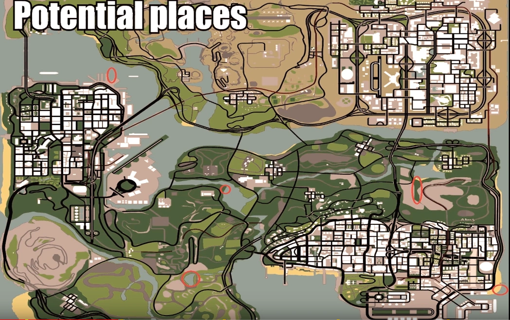 The origins of the myth date back to the famous crocodile and alligator myth nexus in Vice City and Liberty City. Due to the mystery relating to the well-established myths in multiple universes, it was introduced in Grand Theft Auto: San Andreas by the YouTuber ulown00b.[1] During his investigation he sighted what he claimed to be a crocodilian tail at Playa Del Seville in Los Santos, however, the tail soon disappeared. The myth hunter also searched for this myth at various famous mythical locations including Esplanade North and Back O' Beyond. According to the myth hunter, Esplanade North is a good place for crocodiles because of its snaking rock formation that contains a strange green wall and water. It is theorized that the Ghost Lake located in Back O' Beyond could also be a decent home for crocodiles because it is brackish. However, upon technical analysis of the myth, it can be assumed that the tail sighted was merely a part of the bushes disappearing due to draw distance, and crocodiles simply can't spawn because they aren't found in the game's files.