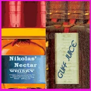 - "Cadian Club.", an altered version of an advertisement for Canadian Club whiskey because, besides having some letters of the name in common and also being "IMPORTED," it has the same slogan:
