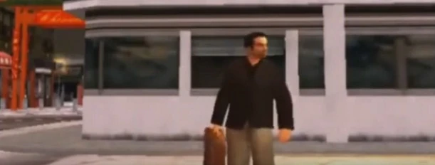 Another Easter egg is the bag that Toni is carrying. It is the exact same suitcase that was carried by CJ in the opening cutscene of Grand Theft Auto: San Andreas. It also features the Rockstar Logo.
