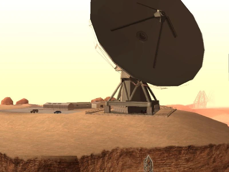 The Big Ear is a large radio telescope located on the top of a desert mesa in Bone County. There are various smaller buildings and shacks around the satellite dish itself that make up the entire satellite complex.