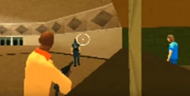 Inside the Vice Point Mall, the player can find various pedestrians trapped inside the walls. The myth originated in 2010 when a YouTube user uploaded a video showcasing two trapped pedestrians inside a closed-off restaurant window. For some time, it was assumed that the pedestrians were simply put there to act as cashiers before the windows were closed off, but subsequent investigations showed that there were multiple pedestrians found in cordoned-off areas of the mall, including the construction area of Vinyl Countdown.
