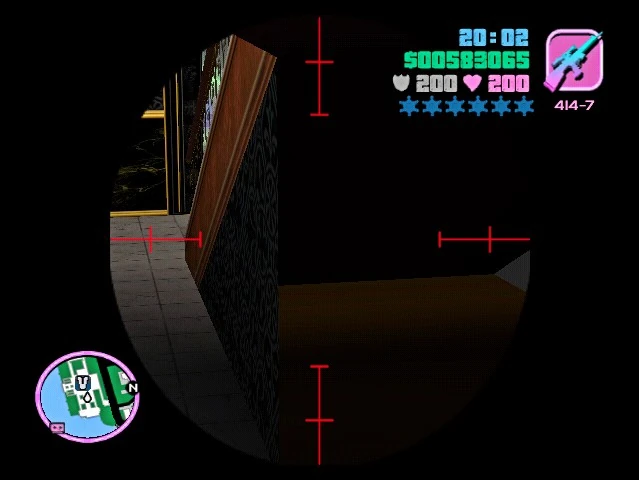 The Vercetti Estate Spandrel is the triangular base of the Vercetti Estate Staircase. Typically, in mansions like the Vercetti Estate, there are small rooms or storage areas built into the spandrel. The lack of a doorway under the staircase made players believe that there was no hidden storage under the staircase, but use of the look through walls glitch revealed that there is an unused and hidden room inside the spandrel. The room has pitch-black walls and a peculiar brown floor, the brown surface expands to a passage behind the wall adjacent to the spandrel. This passage is also unused and unloaded. A rational explanation would be that Rockstar left the passage and spandrel in development and the complete version didn't make it to the final release. The spandrel could be a potential resting place for Ricardo Diaz and it is plausible that Vercetti Gang could've hidden Diaz's body in the spandrel to avoid suspicion, though the area remains empty in-game.